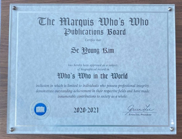 SONGPA-GU, SEOUL, SOUTH KOREA, April 16, 2020 — Marquis Who’s Who, the world’s premier publisher of biographical profiles, is proud to honor Se Young Kim with inclusion in Who’s Who in the World. An accomplished listee, Mr. Kim celebrates many years’ experience in his professional network, and has been noted for achievements, leadership qualities, and the credentials and successes he has accrued in his field. As in all Marquis Who’s Who biographical volumes, individuals profiled are selected on the basis of current reference value. Factors such as position, noteworthy accomplishments, visibility, and prominence in a field are all taken into account during the selection process.
